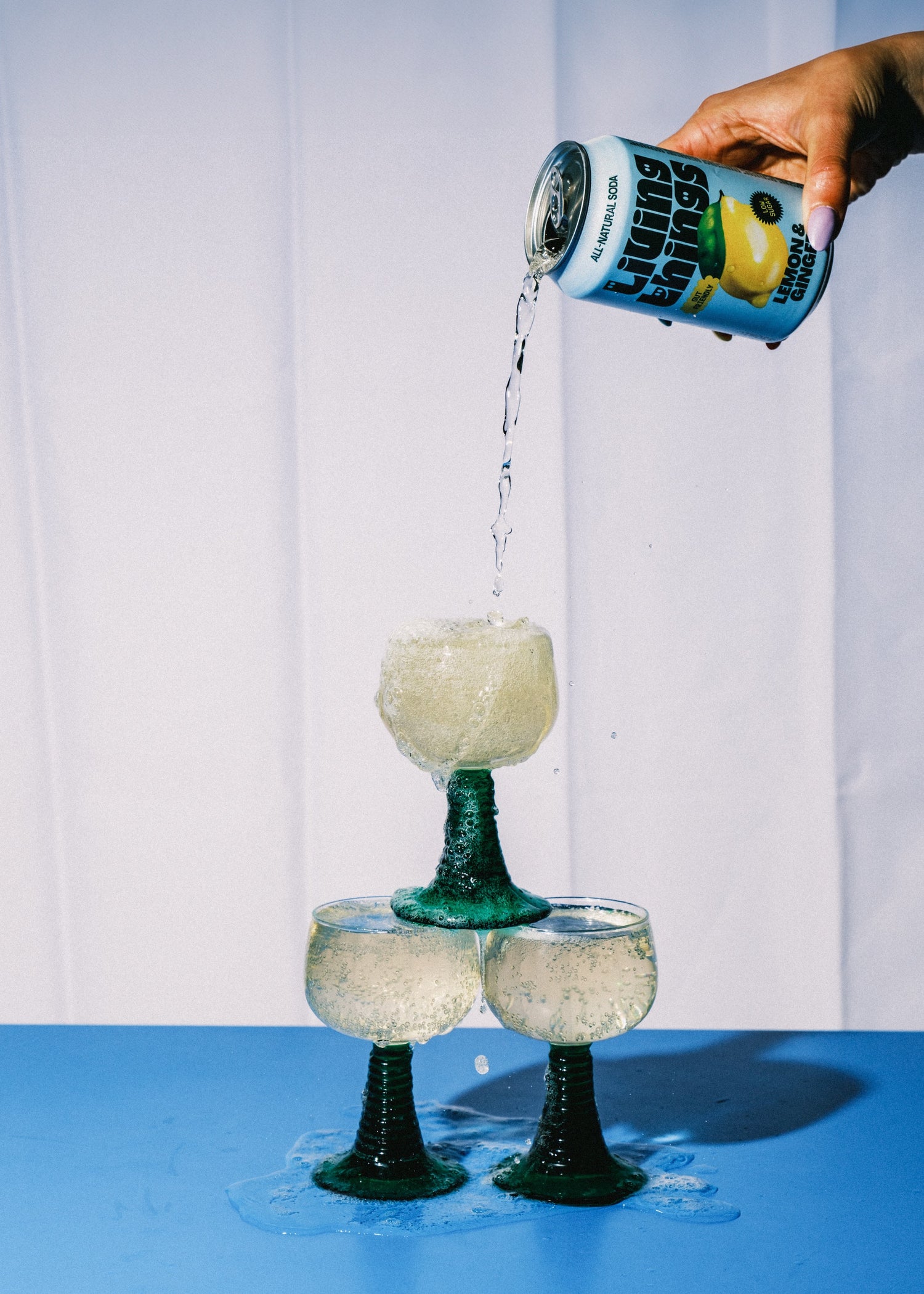 Lightly sparkling lemon and ginger prebiotic soda with belly-loving bubbles